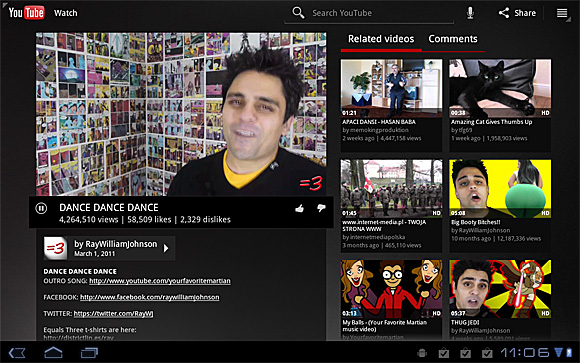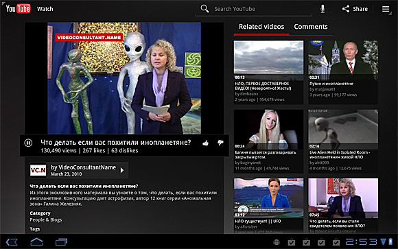Такое ощущение, что это тестовый образец, много чего не доделано. Для примера, просмотр видео в инете на андроиде 2.2 прекрасно работает в браузере, причем с любого сайта, нетолько ютуба.