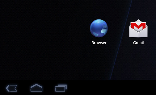Обратите внимание на то, что кнопки управления теперь переместились прямо на десктоп и стали сенсорными. В прошлых версиях Android на устройствах (особенно коммуникаторах), как правило, были три кнопки управления - "Домой", "Назад" и "Меню". В планшетах их было от трех (обычные андроидные машинки) до одной (китайские подделки под iPad). На тех планшетах, где была всего одна кнопка, клавиши управления перекочевывали в верхнюю часть экрана и пользоваться ими было практически невозможно.