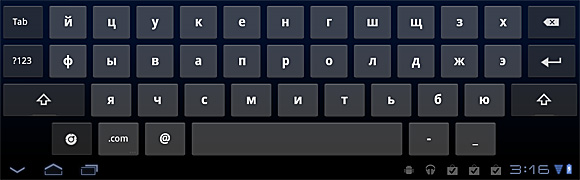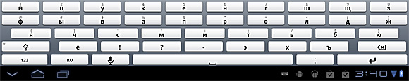 Впрочем, цифровая раскладка поддерживает режим скользящего касания (слизали с iPad) - можно нажать на раскладку, довести палец, не отрывая, например, до запятой или точки, после чего отпустить - вернется буквенная раскладка. Но все равно это все очень и очень неудобно. Не додуматься на основную раскладку поставить запятую и точку - это просто издевательство!