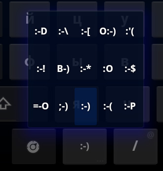 В раскладке при работе с почтой есть кнопка смайликов, которая при длительном нажатии раскрывается и показывает список.