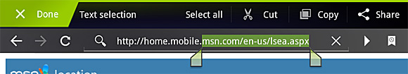 При работе с текстовой строкой можно тапнуть пальцем, после чего появится удобный ярлычок, который позиционирует курсор. При нажатии на ярлычок вставляется текст из буфера обмена.