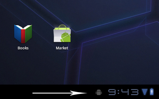 В правом верхнем углу - пиктограмма вызова Android Market, причем обычная пиктограмма маркета также присутствует в списке.