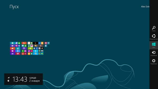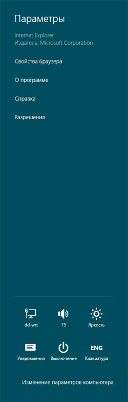Если ткнуть пальцем (курсором) в правый верхний или нижний угол - появляется панель так называемых "чудо-кнопок" (Charms bar).