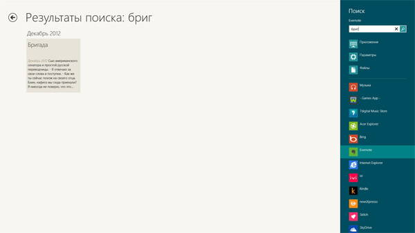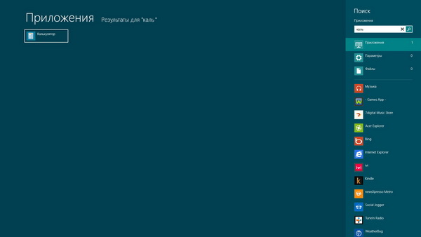 Также в список всех приложений можно войти с десктопа Metro по клавиатурной комбинации Win+Q или же вы можете просто начать набирать название нужного приложения - появится окно поиска со списком приложений.
