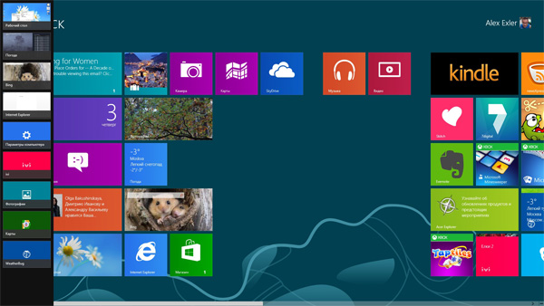 В отличие от Android и iOS, где пиктограммы приложений всегда имеют одинаковый размер и при этом не являются анимированными, плитки Windows 8 могут быть двух видов форм - квадрат или прямоугольник, - и они могут быть не просто анимированными, а умеют отображать важную информацию: например, на плитке галереи изображений последовательно сменяются картинки, на плитке видеосервиса появляются картинки из трейлеров фильмов и так далее.