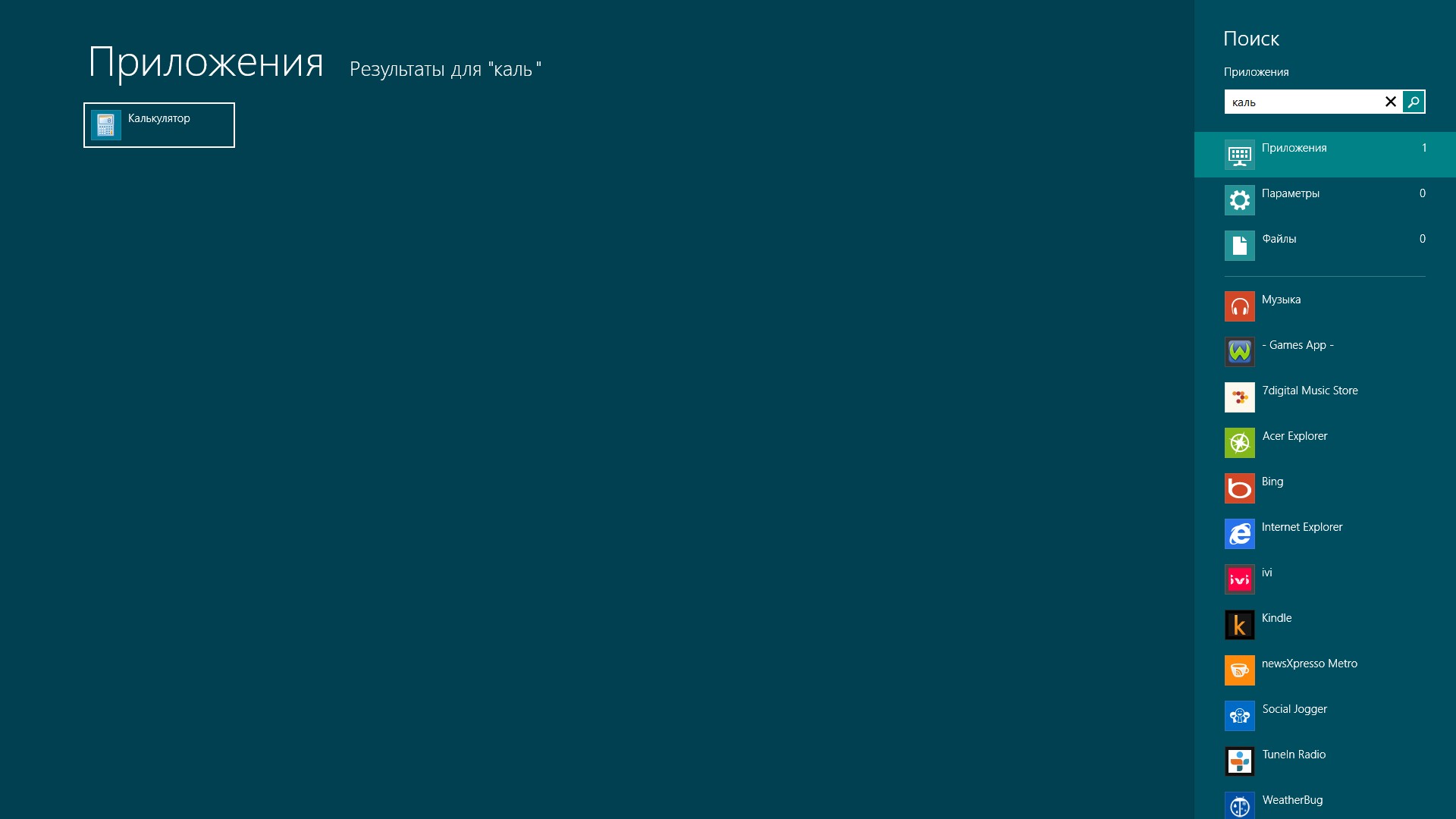 Однако вы также можете искать что-то в параметрах (то есть поиск по справке), среди файлов и среди конкретных приложений под Metro.