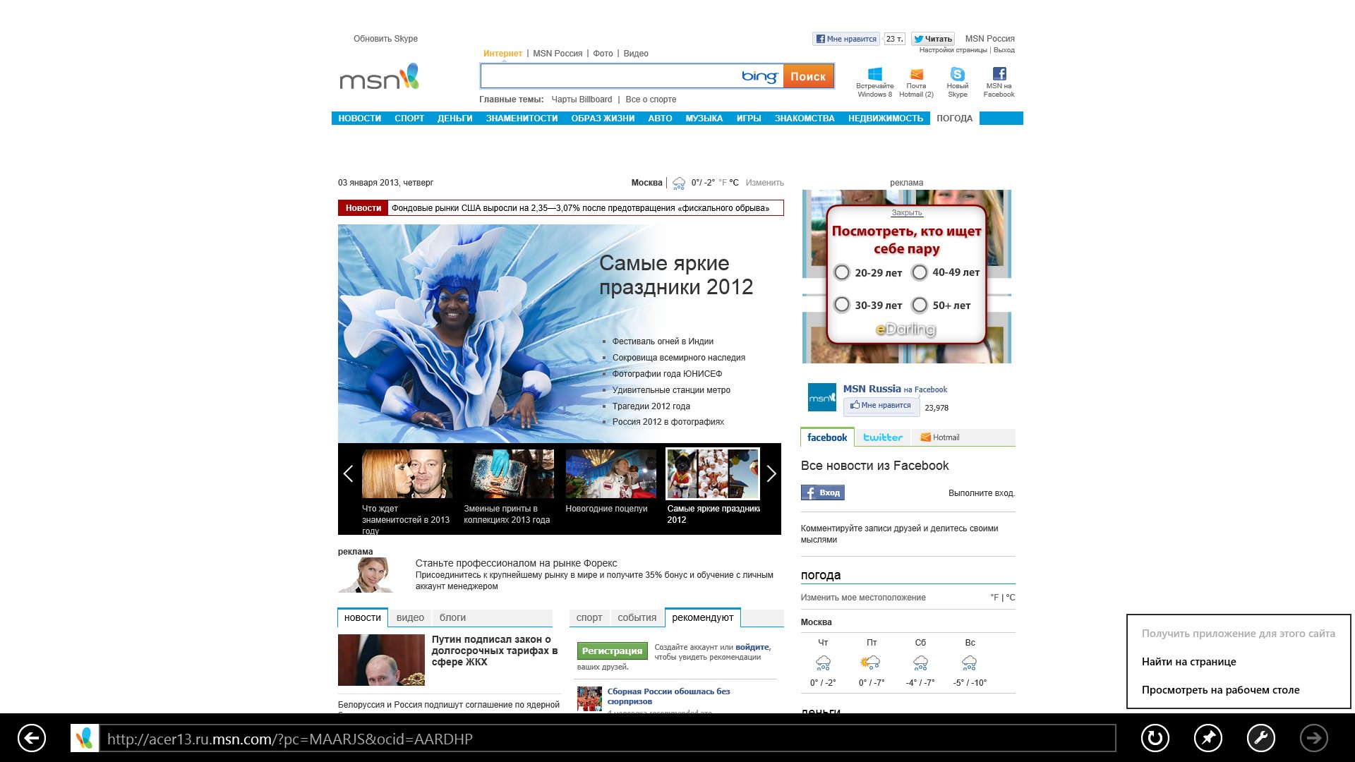 Кроме того, что вполне логично, есть некоторые приложения, которые даже в базовой поставке Windows 8 существуют в двух версиях: в специальной под Metro и в виде обычного приложения Windows - например, браузер. Поначалу это кажется диким, но на самом деле подобный подход вполне логичен: операционка заточена под сенсорный экран и под обычный ПК, ну и, соответственно, кое-какие программы заточены под разные варианты использования.