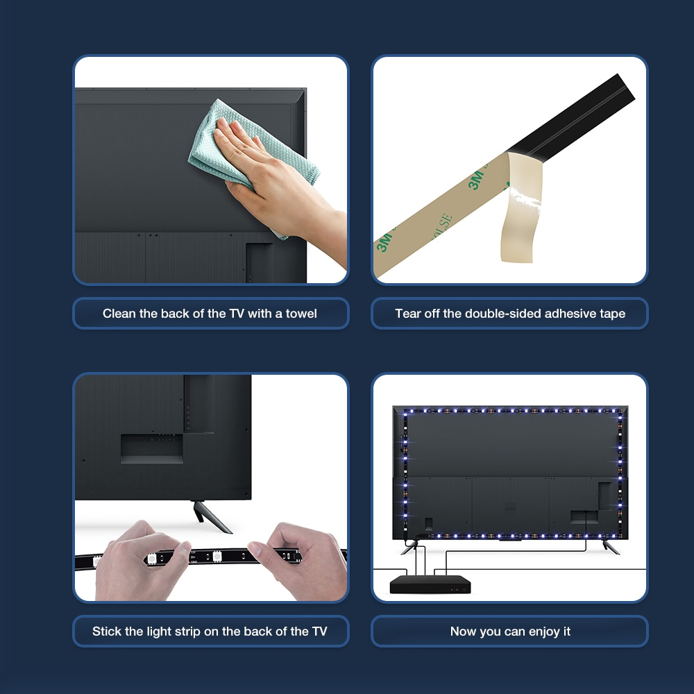Но придётся поработать руками - протереть телек сзади по контуру спиртом, и наклеить ленту по периметру, с отрезанием запаса. Или без отрезания (тогда в районе наложения концов яркость чуть выше. (картинка должна быть здесь)