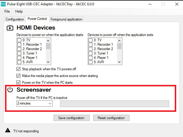 Нвидиевские видяхи не поддерживают hdmi-cec (хз почему они его туда не встроят)
