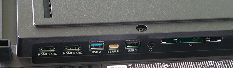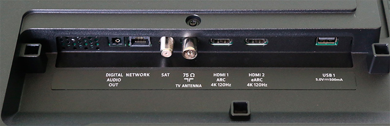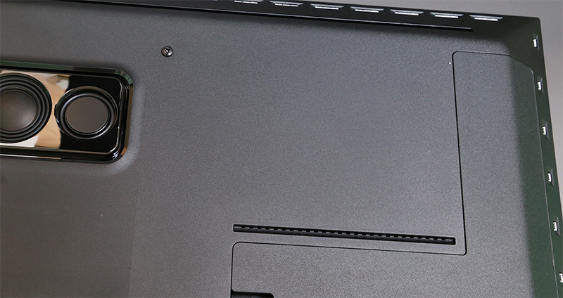 Подробные технические характеристики вы найдете здесь, а я покажу набор портов и динамики на задней крышке телевизора.