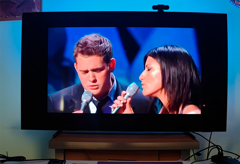 Единственная небольшая проблема, которая со всем этим обнаружилась, - видеокамера далековато стоит, а ближе ее никак не поставить, чтобы она не закрывала экран. Но пользоваться тем не менее вполне можно, а кроме того, если уж сильно захочется увеличить размер своего присутствия в экране - у меня есть смартфон, планшет, ноутбук, наконец, так что проблема вполне решаемая.