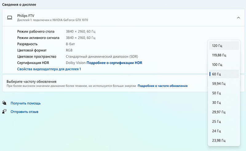 Ну и по поводу повышенной частоты обновления. Я поначалу поставил 120 Гц и несколько дней проработал с такой частотой. Потом вернул 60 Гц и сравнил впечатления. Ну да, с частотой 120 Гц немного плавнее выглядит скроллинг в браузере. Но и с частотой 60 Гц это тоже все происходят достаточно плавно, так что я эту частоту так и оставил - зачем зря электричество тратить? Никакой "ошеломляющей разницы", о которой пишут некоторые пользователи, я не вижу даже рядом. Я ее что на смартфонах не вижу, где я также не ставлю повышенную частоту обновления, и на этом телевизоре я ее не вижу.