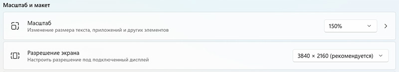 Разрешение я выставил максимальное, а масштаб поставил в 150% (у старого монитора было 125%) - так получился оптимальный баланс между разрешением, размером экрана и тем, что мне нужно было видеть на экране.