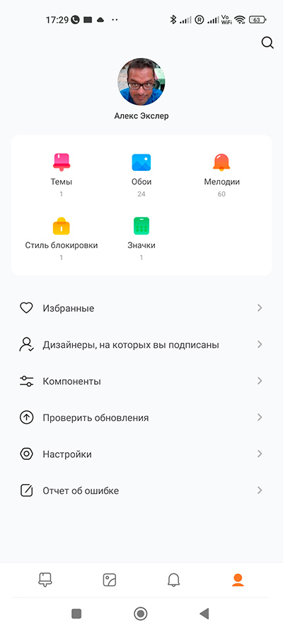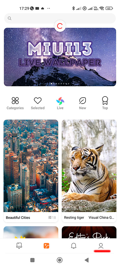 И как добраться до суперобоев? Надо в приложении "Обои" зайти в профиль (на скриншоте слева подчеркнуто) и уже там щелкнуть на значок "Обои".