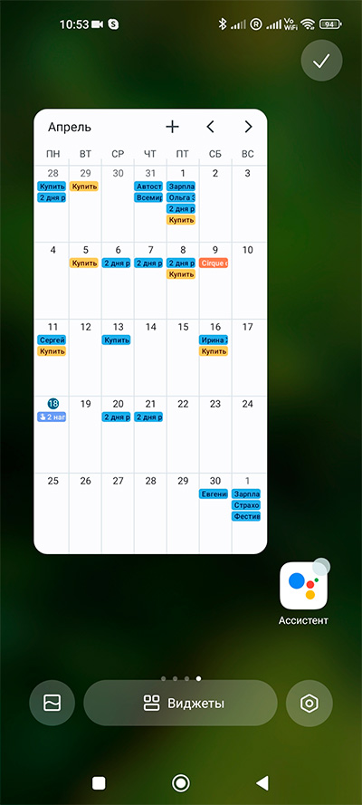 Несколько видоизменились и расширились системные виджеты: появились новые варианты и новые размеры.