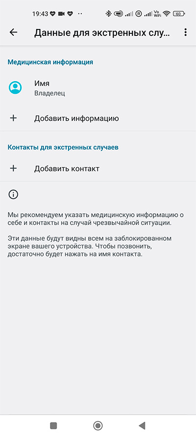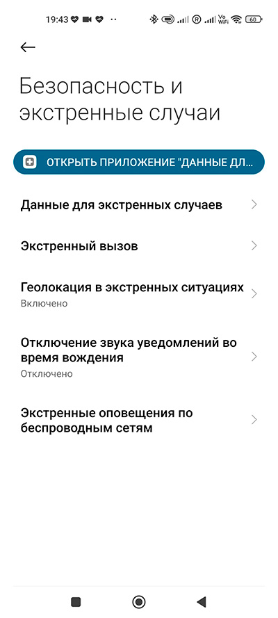 В настройках заметно расширили данные и опции для безопасности и экстренных случаев.