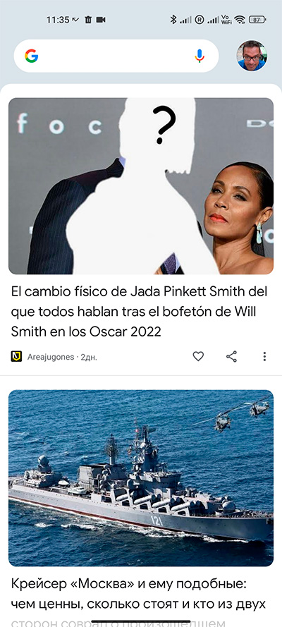 Здесь ее уже нет, вместо ленты виджетов - стандартный Google Discover с новостями.