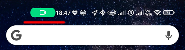 Если активно приложение "Камера", то появляется небольшой зеленый кружок.