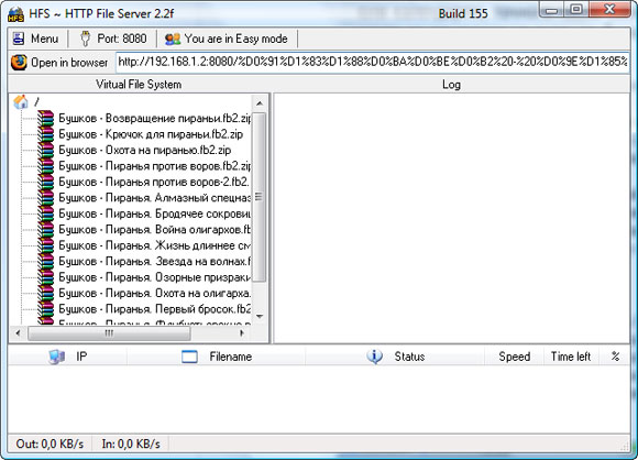 Однако вы можете с помощью простых ухищрений закачивать файлы и с локального компьютера через сеть. Один из этих способов, почерпнутый здесь, использует маленький HTTP-сервер HFS (скачать). Запускаете HFS, переносите в окно Virtual File System мышкой нужную группу файлов.