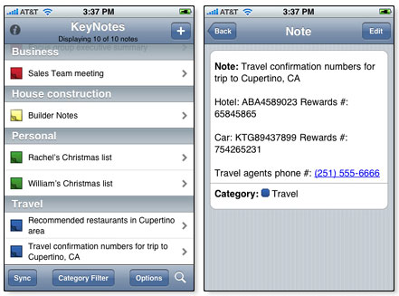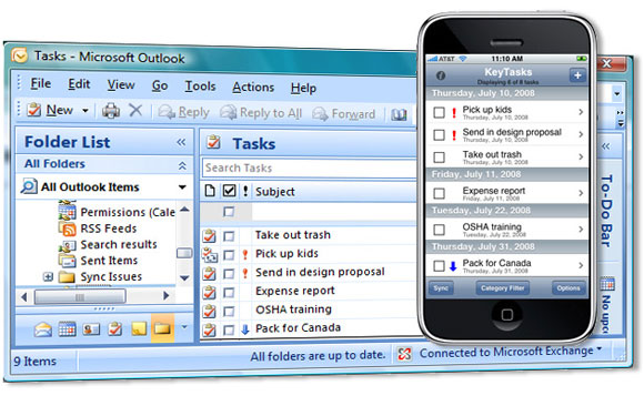 А вот с задачами и заметками есть определенные проблемы - iTunes их вообще не понимает. Но проблема все-таки решается - с помощью программ, которые можно найти в iTunes Store. Это KeyNotes и KeyTasks. Обе платные - по $10. KeyNotes синхронизирует с iPhone заметки из Outlook, KeyTasks - задачи.