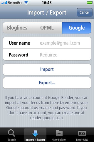 Это очень практично! Вы можете создать нужную подписку, например, в Google Reader (это на порядок быстрее, чем через iPhone), после чего просто импортируете ее в NewsStand, а далее только остается щелкать по кнопочке "Обновить".