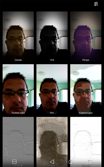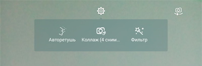 У фронтальной камеры есть три режима: авторетушь, коллаж, фильтр.