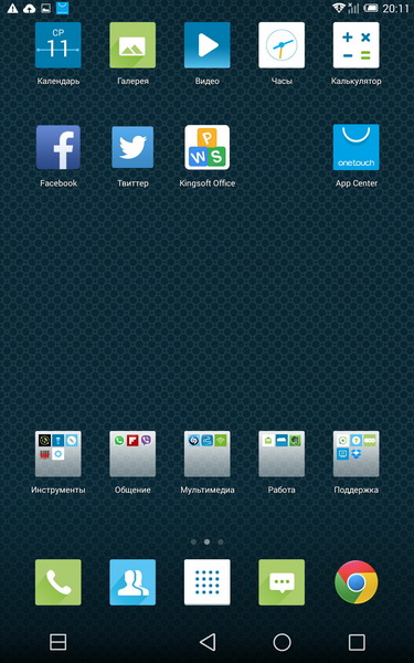 Здесь установлены операционная система Android 4.4.2 и собственная оболочка от компании Alcatel. Кроме стандартного андроидного набора приложений здесь также установлено большое количество самых разнообразных сервисных программ.
