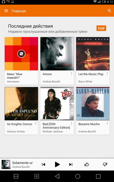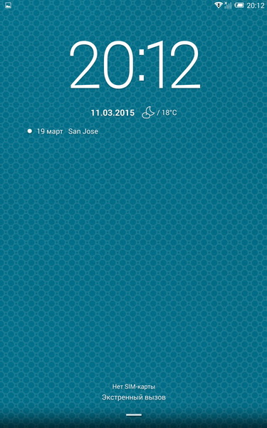 Экран блокировки. На него могут выводиться уведомления о пропущенных звонках и сообщениях, панель медиаплеера, если планшет проигрывает музыку. (При этом вместо обоев ставится обложка проигрываемого альбома - это хорошо придумано.)