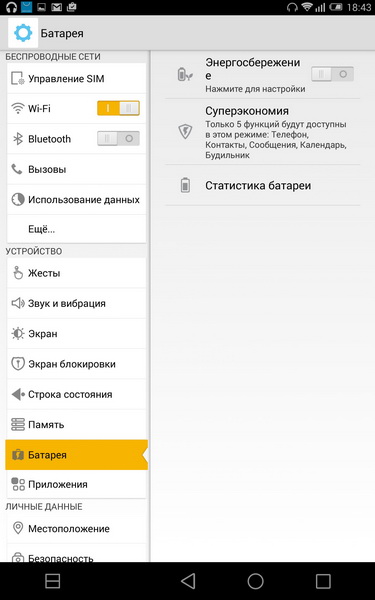 Здесь зачем-то предусмотрен режим суперэкономии, обычно характерный для смартфонов: экран переходит в режим пониженного энергопотребления, доступны только четыре приложения: телефон, контакты, SMS и календарь. Однако они при этом забыли заблокировать кнопку оконных приложений, в результаты чего даже в этом режиме вы можете запускать любые приложения. В общем, не очень понятно, зачем это сделано.