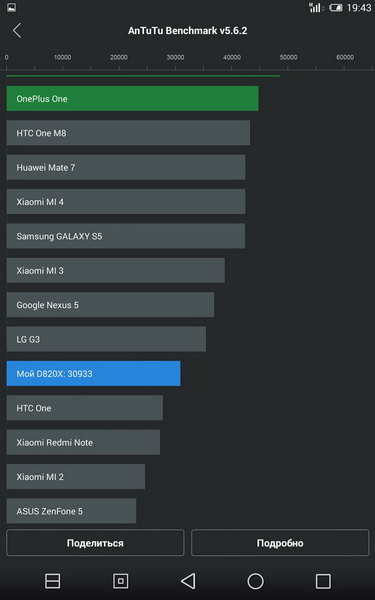 Установленный здесь чипсет характеризуется высокой производительностью, и AnTuTu выдал ему 30 933 единицы - это довольно много.