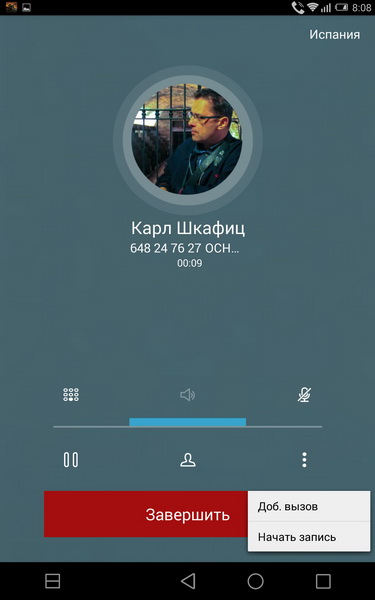 В процессе разговора кроме обычных функций также доступна запись беседы.
