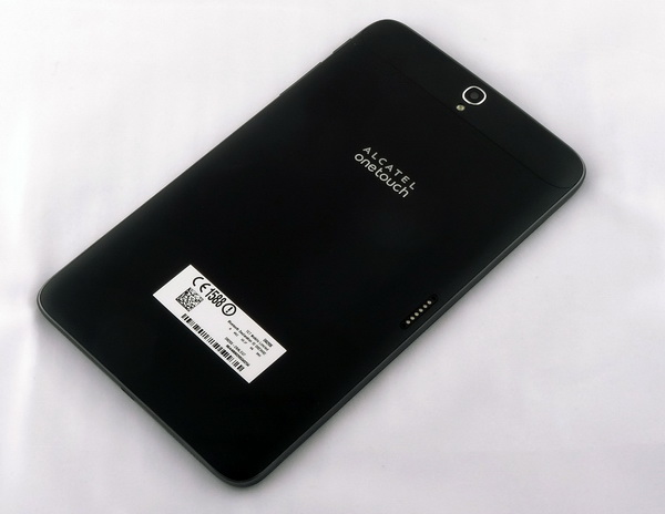 Задняя часть планшета накрыта матовым пластиком черного цвета. Там располагаются шестиконтактный коннектор для подключения фирменного чехла с дисплеем, глазок камеры и вспышка.