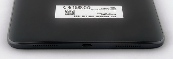 На нижнем торце - сетки двух динамиков и выход microUSB.