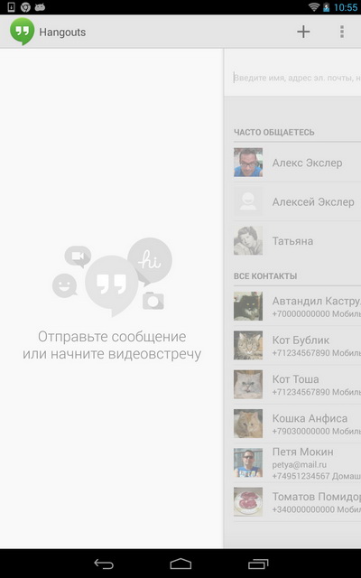 Hangouts - новый универсальный мессенджер от Google. В нем объединены Google Talk, Google+ Messenger и Google+ Hangout.