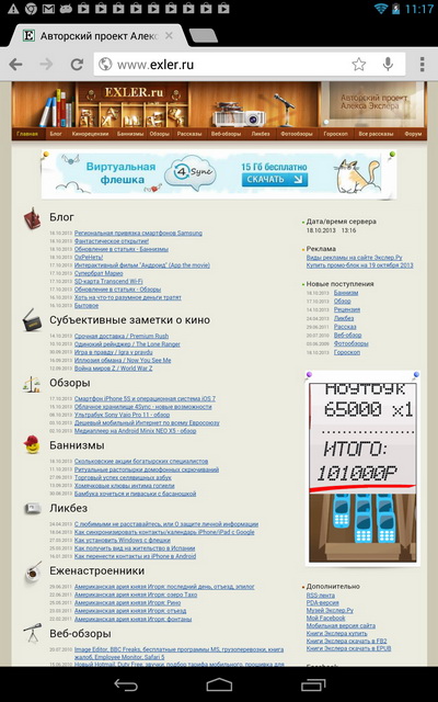 Браузер - Google Chrome. Очень удобно то, что при подключении учетной записи он тут же восстанавливает все закладки и прочие настройки. Ну и на таком разрешении с сайтами работать вполне комфортно.