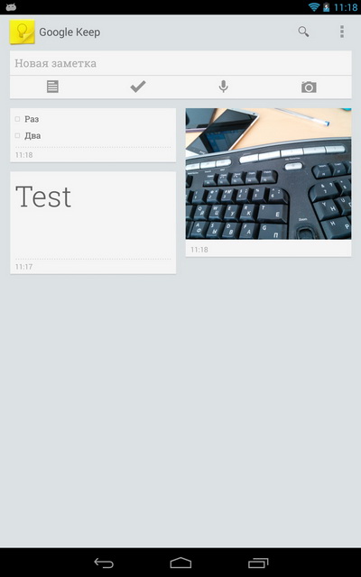 Google Keep - средство для хранения заметок, списков, фотографий и голосовых заметок. Не слишком удобное, Evernote, на мой взгляд, удобнее на порядок.