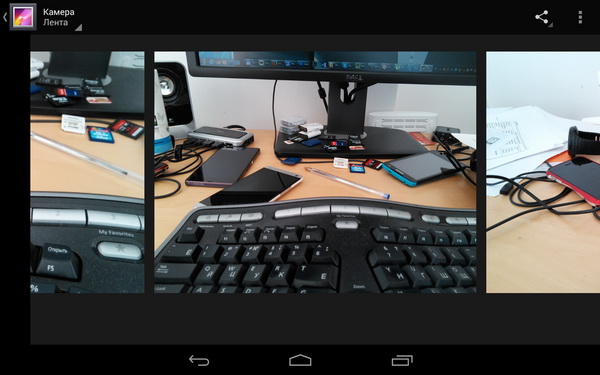 За период тестирования в планшете выявилось одно проблемное приложение - это камера. При ее использовании пару раз были случаи, когда планшет насмерть зависал, а потом перезагружался. Аналогичные проблемы, насколько я помню, были у Samsung Galaxy S 4 до какого-то определенного обновления. У этого планшета проблемы с камерой и перезагрузы носили системный характер, судя по отзывам в Интернете, но с новой прошивкой 4.3 косяков вроде поубавилось. Тем не менее у меня на самой новой прошивке он при использовании камеры пару раз перезагрузился.