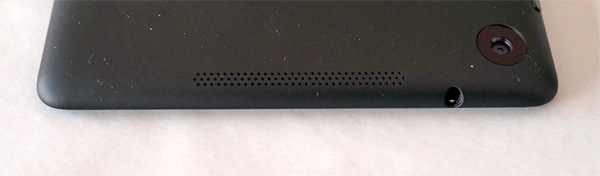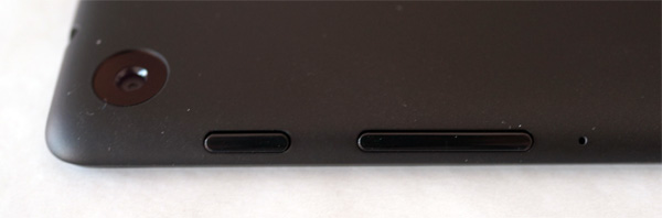 Правый торец - кнопка питания и качелька регулировки громкости. Кстати, решение откровенно паршивое: очень легко выключить планшет, когда хочешь просто прибавить громкости, ну и наоборот. Почитал отзывы в Сети - очень многие пользователи на это жалуются. Впрочем, такое расположение, скорее всего, объясняется тем, что этот планшет в основном ориентирован на использование в альбомном режиме: тогда кнопка питания оказывается слева сверху и удобно нажимается указательным пальцем левой руки.