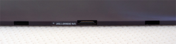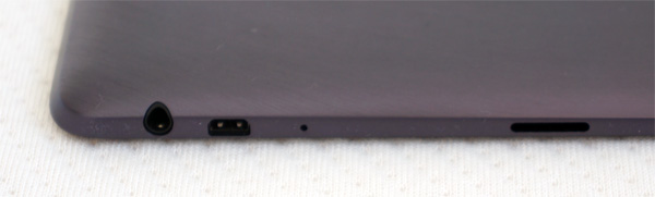 Нижний торец - сорокаштырьковый слот для подключения к док-станции или к кабелю USB. Слева и справа от него - отверстия для направляющих дока, чтобы планшет хорошо закреплялся в док-станции.