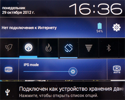 Планшет поддерживает два режима работы дисплея - просто IPS и Super IPS+, при котором и так-то хорошая яркость еще увеличивается. Предполагается, что режим Super IPS+ будет использоваться на улице при ярком свете - я потестировал этот режим на прямом солнечном свете и был впечатлен результатами: на планшете реально было все прилично видно, можно было использовать.