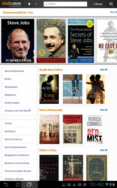Амазоновский онлайновый книжный магазин. Можно покупать книги и периодические издания, ну и, соответственно, читать их прямо в этой программе. Читать очень удобно, издания сверстаны специально под эту программу.
