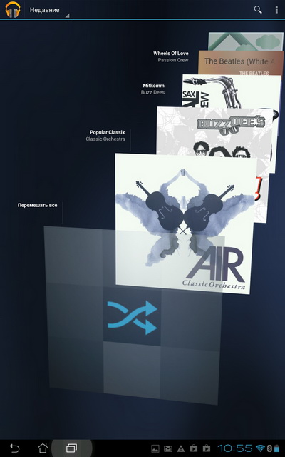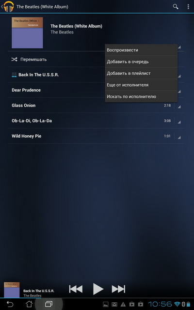 Обычный аудиоплеер - стандартный андроидный, то есть достаточно убогий. Отвратительные возможности отбора-сортировки, примитивнейший плеер.
