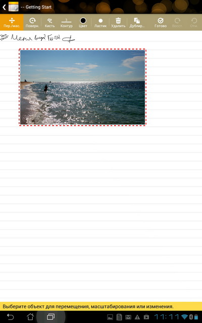 В отличие от S Note от Samsung здесь можно писать хоть на всей ширине экрана, а введенный текст потом преобразуется в рукописный, размещенный на одной строчке.