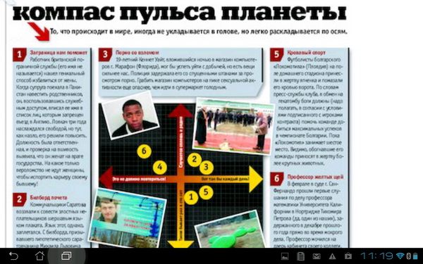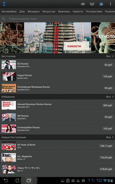 Еще одна известная система подписки на периодику. Выбор неплохой, содержит в основном всякие глянцевые журналы, однако приложение очень тормозное.