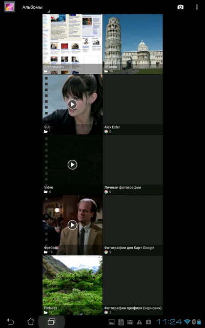 Стандартные андроидные медиаальбомы. Мне, в общем, их хватает (хотя не совсем удобно, когда там смешиваются изображения и видео), а если требуется что-то более продвинутое - всегда можно поставить.