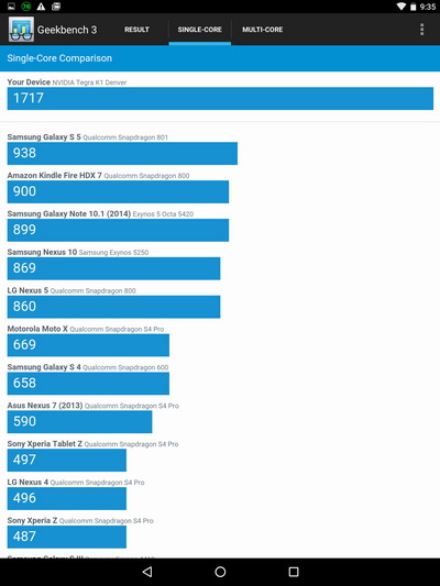 Это первый планшет с данным чипсетом на рынке, а в NVidia утверждают, что Tegra K1 Denver дает производительность на уровне хорошего персонального компьютера.