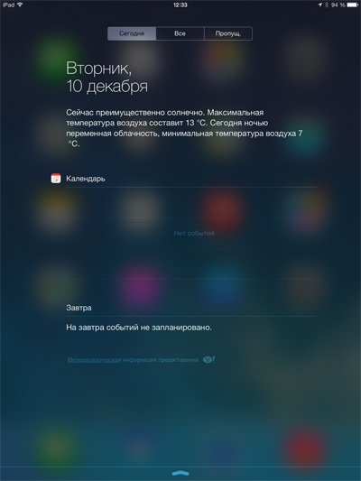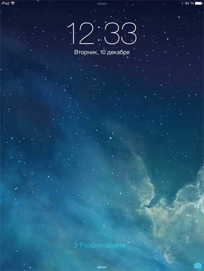 Экран блокировки, на который могут выводиться самые различные сообщения: пропущенные вызовы по FaceTime, пришедшие письма и так далее.