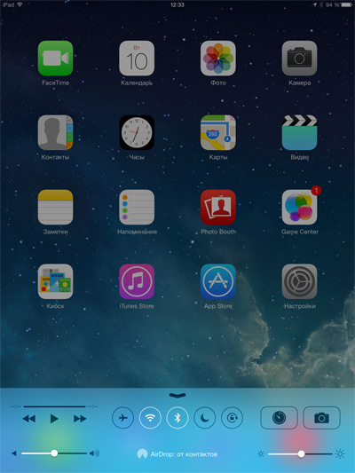 Пульт управления, вызываемый скользящим движением от низа экрана.