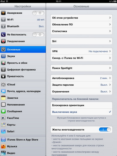 Настройки от большого iPad ничем, насколько я мог судить, не отличаются.