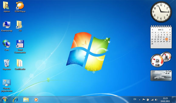 Рабочий стол, разумеется, выглядит как обычный рабочий стол Windows 7 - а как ему еще выглядеть?